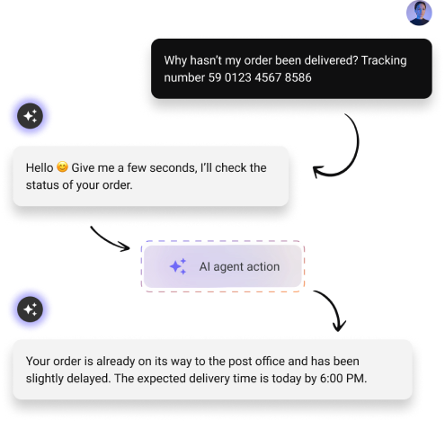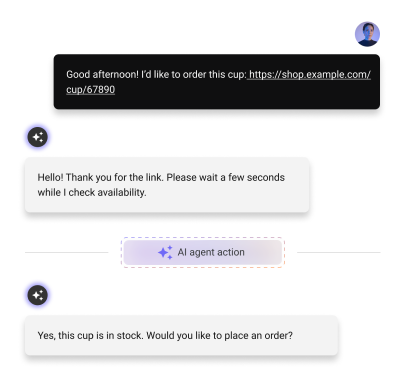 The Intelswift chatbot is powered by AI agents. This means that inside the chat window, it’s not just a linear bot, but an AI agent that responds almost like a human, carries on a conversation, and makes decisions. It can also perform actions — for example, check your system for product availability or update a customer’s delivery address.