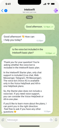 It's more than a chatbot solution. Intelswift ensures omnichannel connectivity with your audience by optimizing responses routing rules and combining a live chat, shared inbox, a knowledge base, AI-driven communication and data analysis tools. Your platform for support and growth is ready to launch.