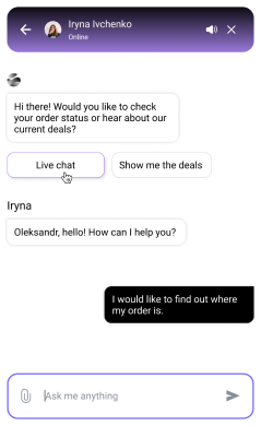 By default, AI replies to your customers first. But this can easily be changed in settings. Your operators can see all conversations and receive notifications about new messages. They have full conversation context, making the chat productive from the very first second.