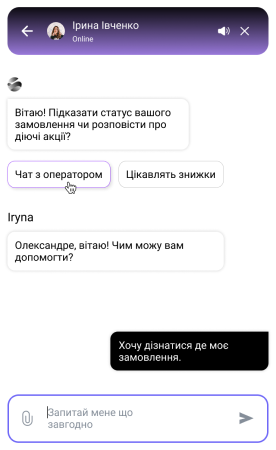 За замовченням вашим клієнтам першим завжди відповідає ШІ. Але це легко змінити в налаштуваннях. Також, клієнт завжди може сам обрати чат з оператором — і тоді ШІ переключить на людину. Ваші оператори бачать всі розмови та отримують сповіщення про нові повідомлення. Оператор бачить контекст розмови, що робить чат продуктивним з першої секунди.